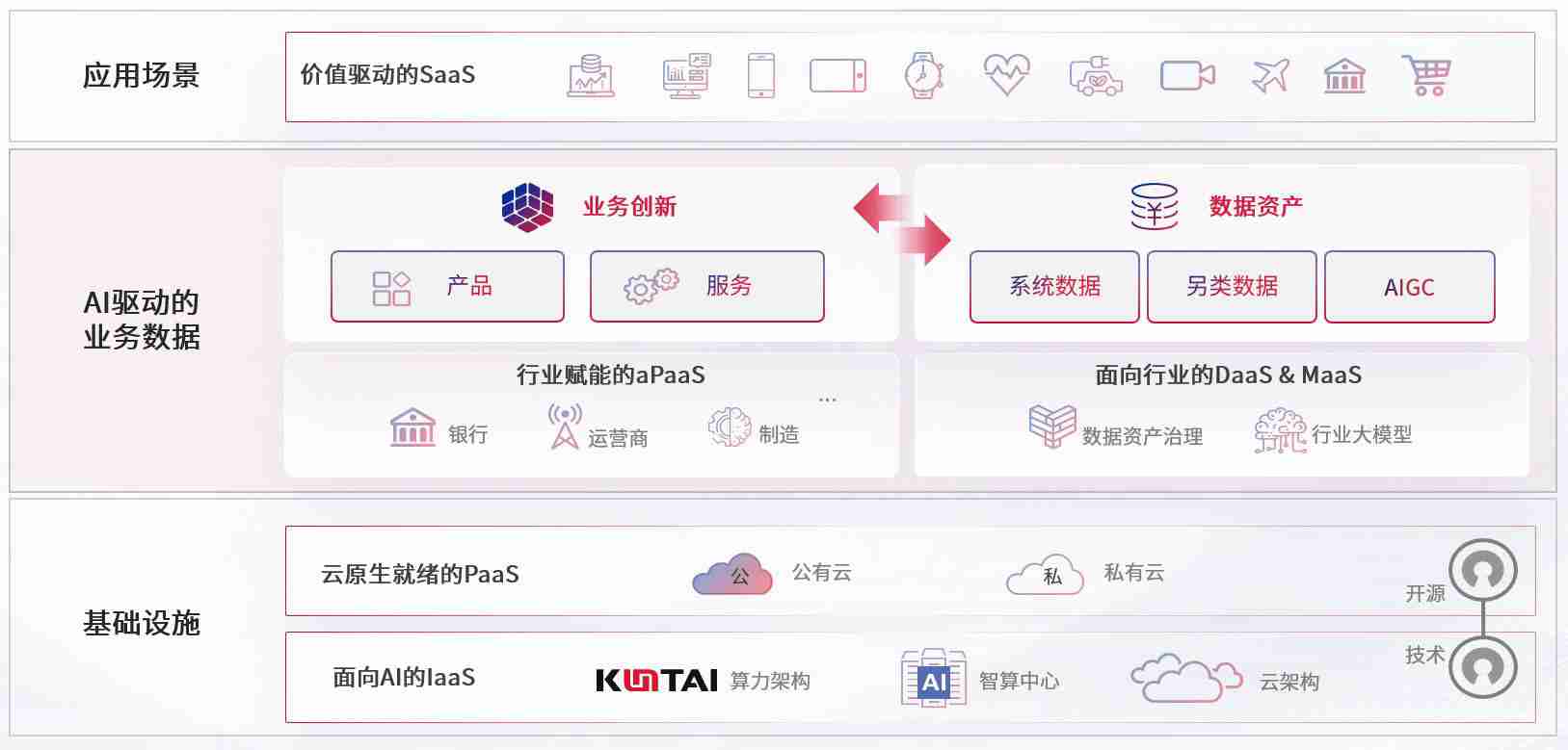 数字时代,,围绕企业数字化转型的关键要素,,,尊龙集团数码开创性的提出数云融合战略和技术体系框架,,,着力在云原生、、数字原生、、、AI原生和信创产业上架构产品和服务能力,,,为处在不同数字化转型阶段的快消零售、、汽车、、金融、、医疗、、政企、、、教育、、、、运营商等行业客户提供泛在的敏捷IT能力和融合的数据驱动能力,,,构建跨界融合创新的数字业务场景和新业务模式,,,助力企业级客户建立面向未来的核心能力和竞争优势,,,全面推动社会的数字化、、智能化转型升级。。。。